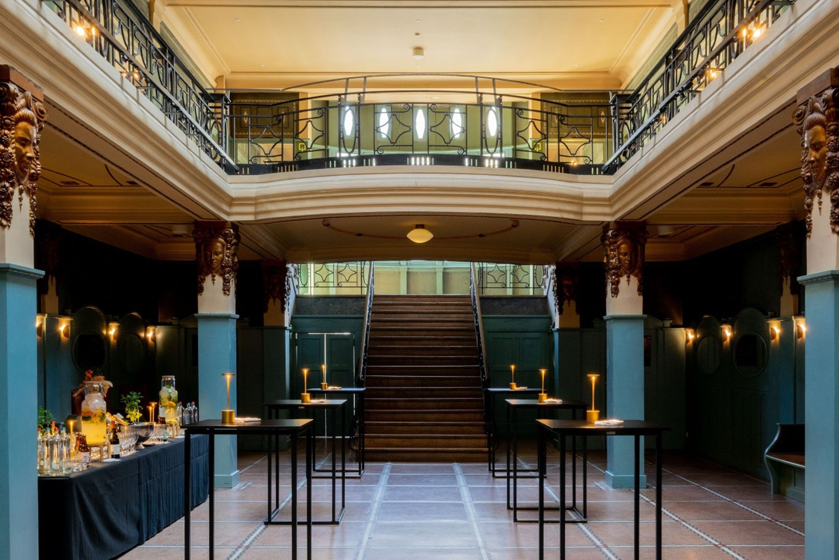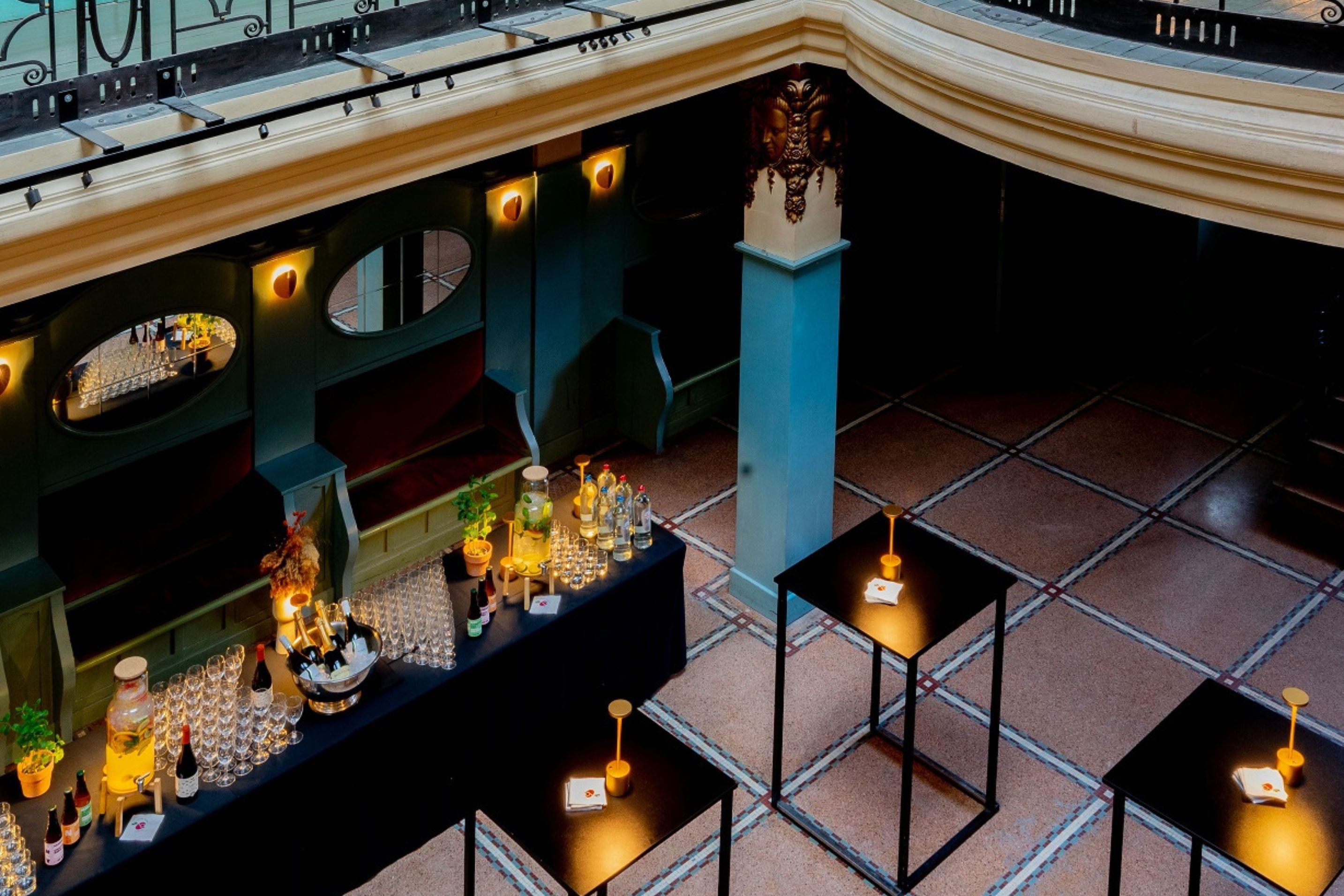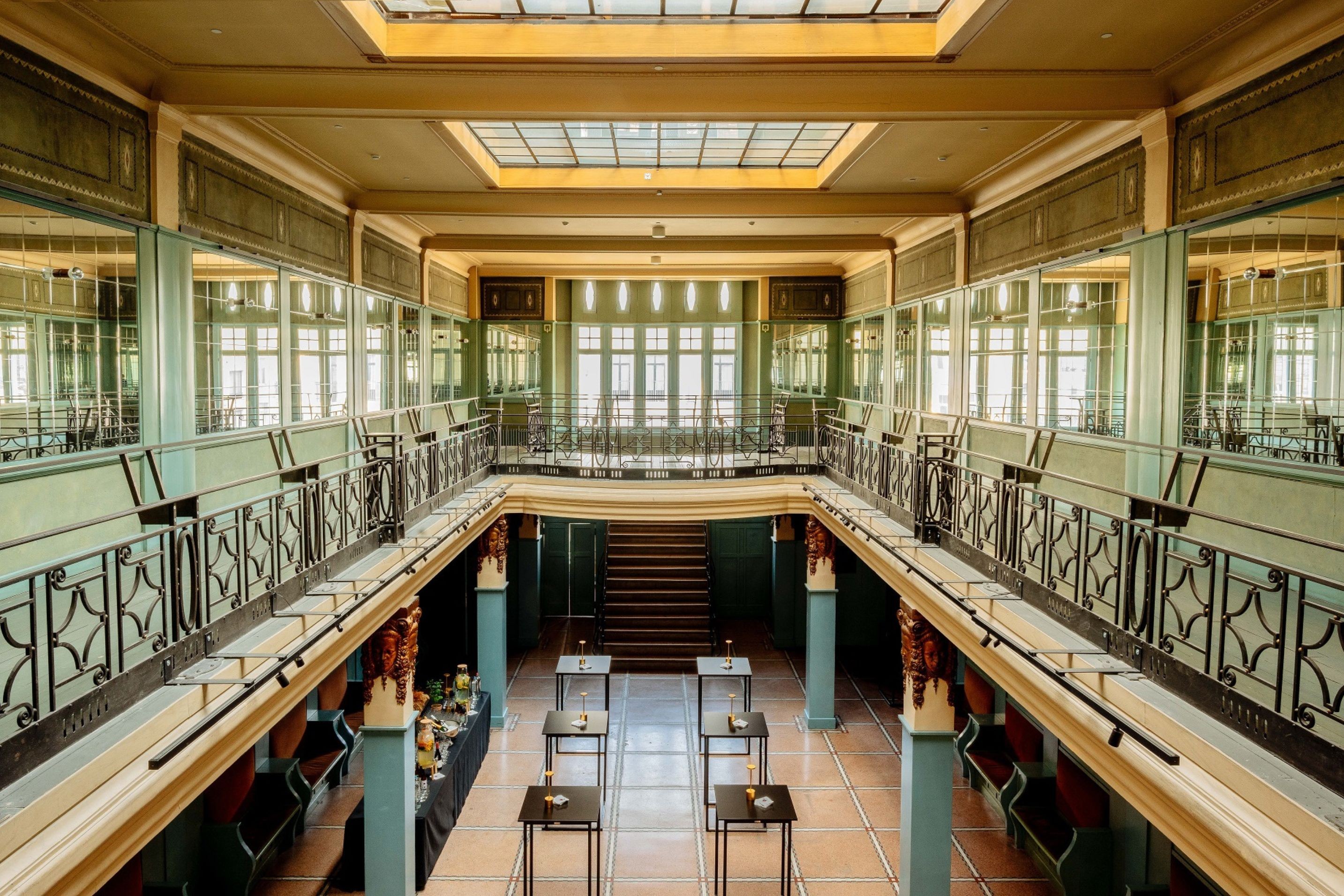 The Hamesse foyer, named after the famous Brussels architect who designed it in 1913, is a listed space with an elegant gallery. It is perfect for all kinds of events: meetings or conferences for up to 90 participants, private or corporate dinners for up to 100 guests, walking dinners, or dance parties for up to 200 people.