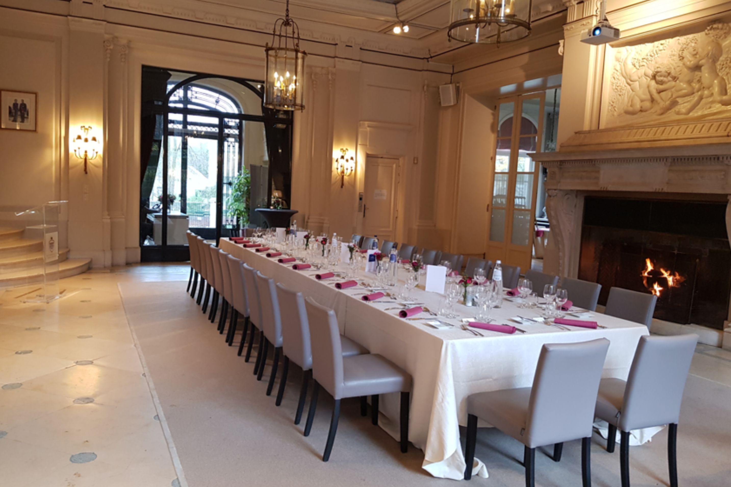 The first floor houses three beautiful salons, organized around a landing that can also be used. Two of them, Prince and Président, are connected and each offer 50 seats or space for 60 standing guests. The Salon du Parc is ideal for smaller gatherings: seated meals or meetings for up to 40 participants, or an aperitif for a maximum of 60 guests.