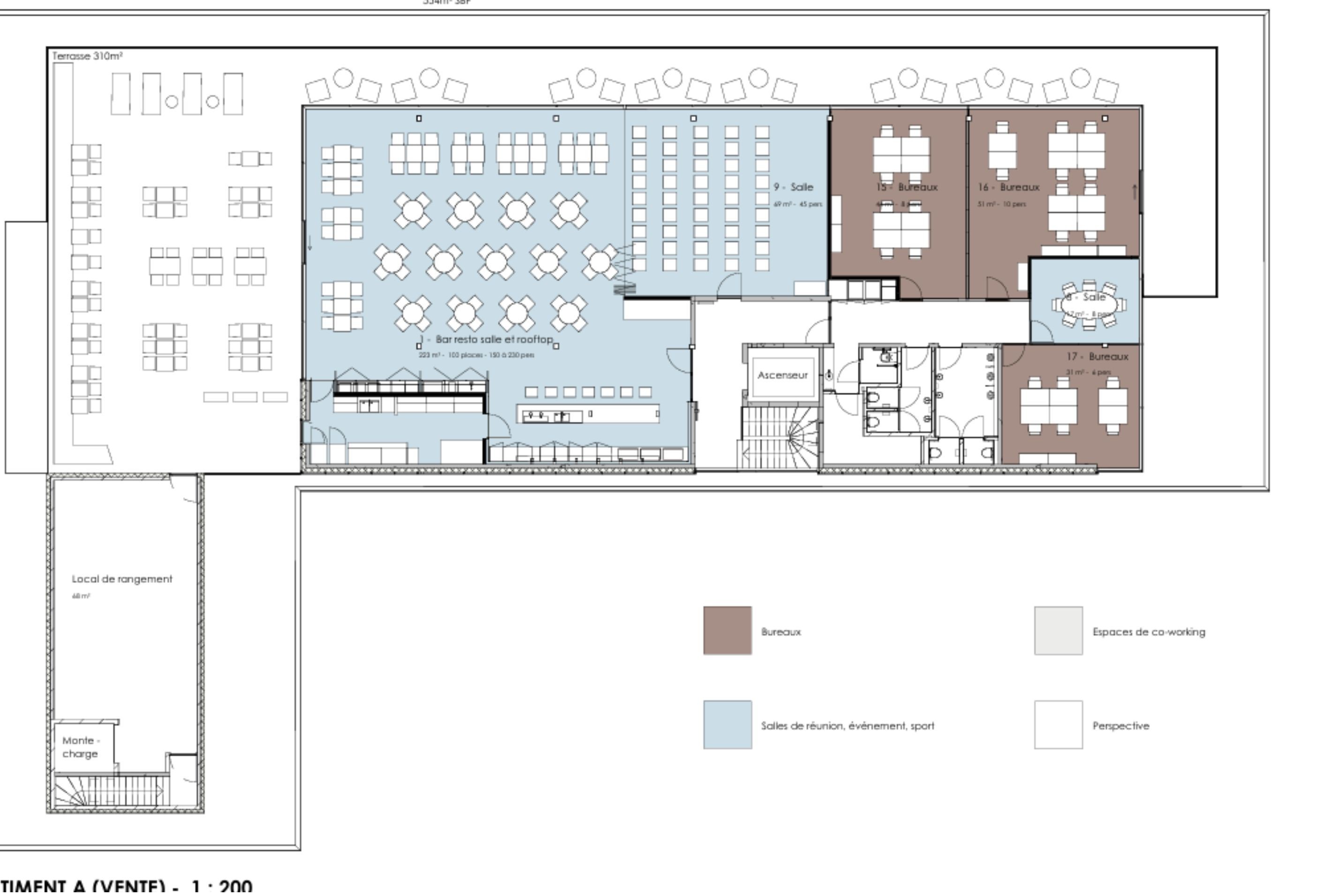 The business center also includes a fully modular event space, featuring a conference room, a restaurant, and a stunning rooftop. This space can host professional fairs, congresses, gala evenings, or corporate cocktails for up to 480 guests.