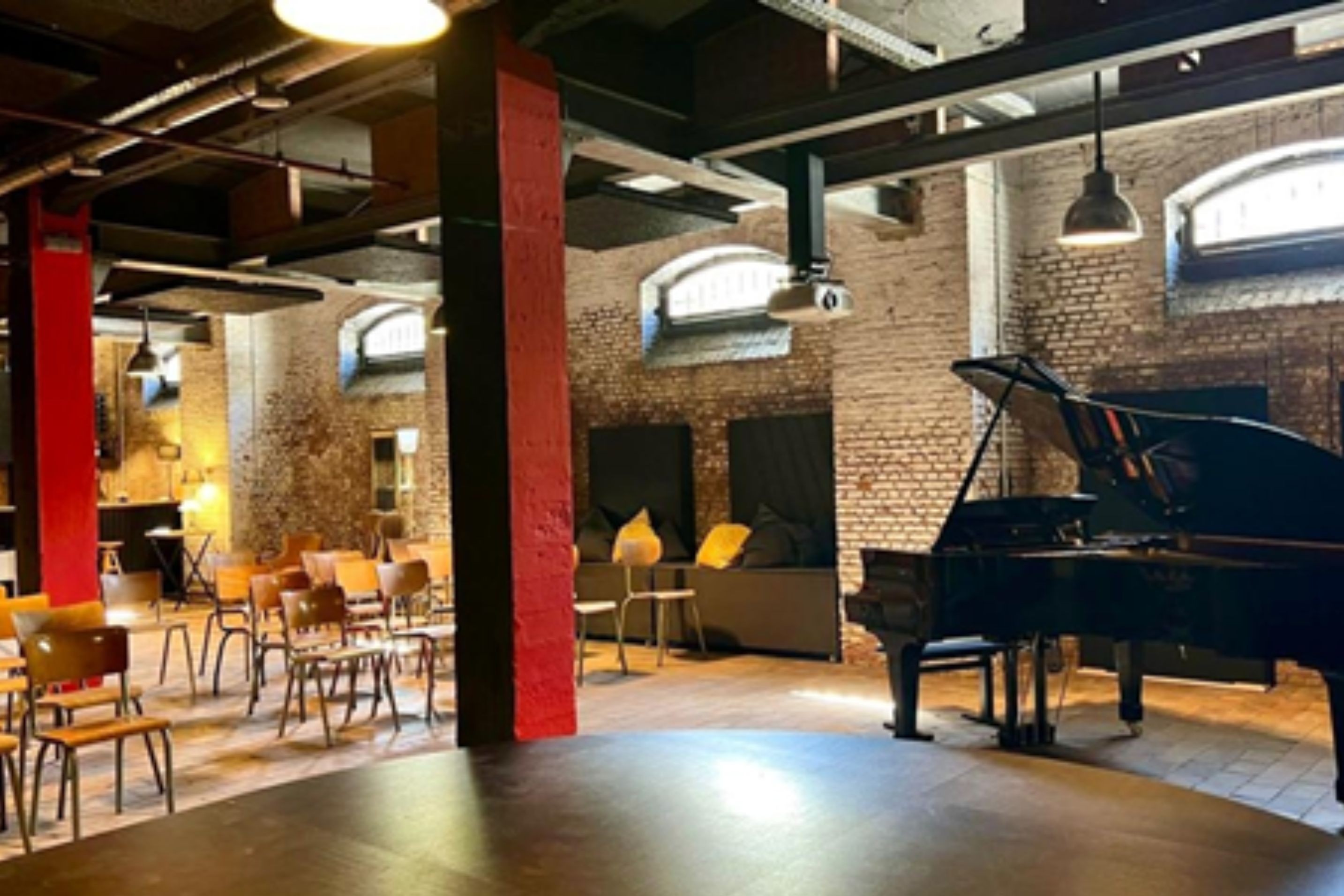 This original venue is housed in a repurposed 180 m² industrial space. Located beneath the circus school in the trendy Tour & Taxis district, it now features a stage, bar area, and a fully equipped room for private, professional, or community events. From birthday parties to circus shows, corporate meetings to cocktail receptions, concerts to exhibitions — all event formats are welcome here!