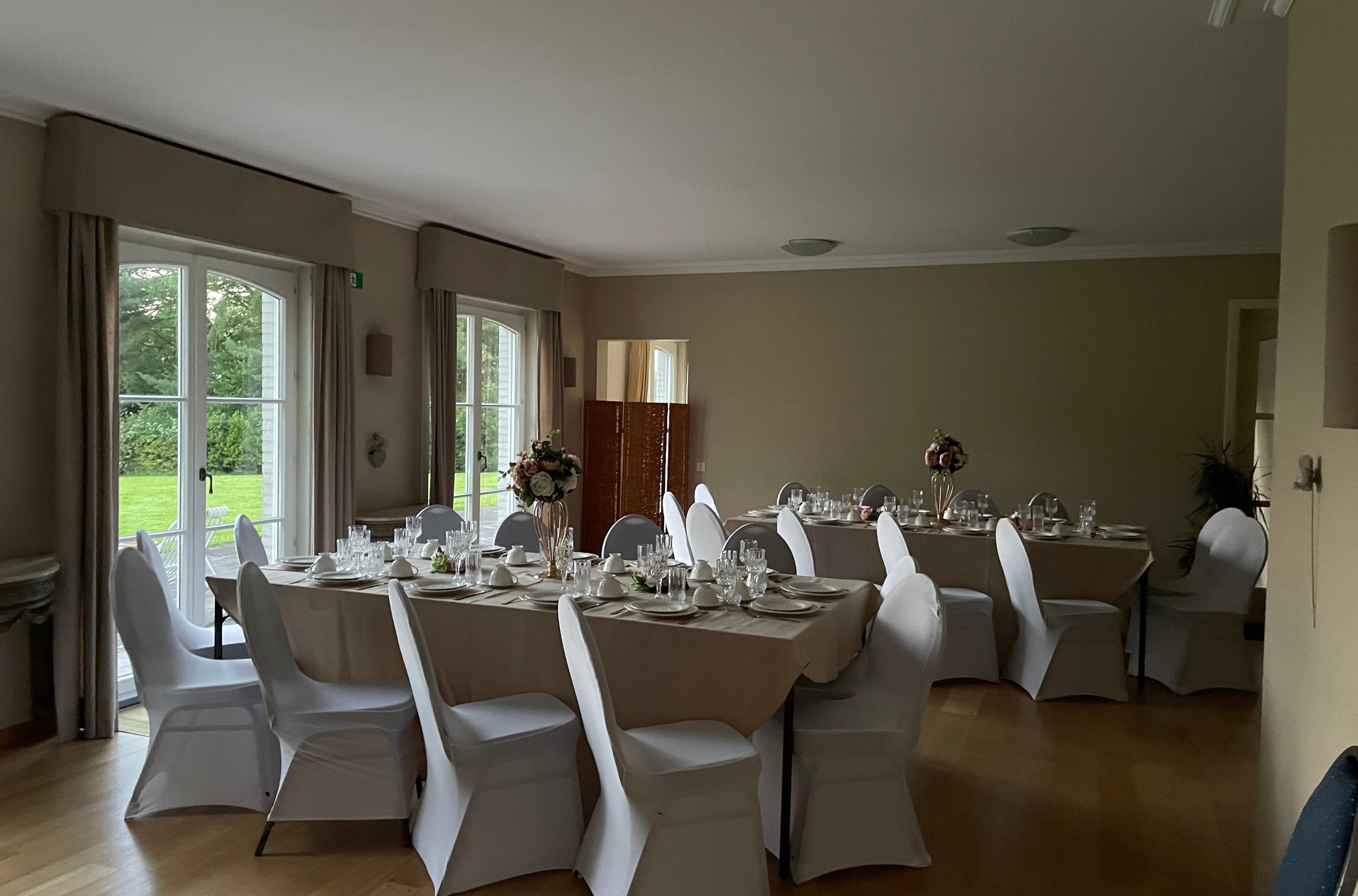 Cette villa de caractère se constitue au rez-de-chaussée d'un grand hall d'accueil, d'une vaste salle de réunion et de trois salles plus petites, en faisant un lieu idéal pour accueillir des événements professionnels à la journée. Cet agencement est également idéal pour accueillir des événements plus personnels tels que des réunions de famille.