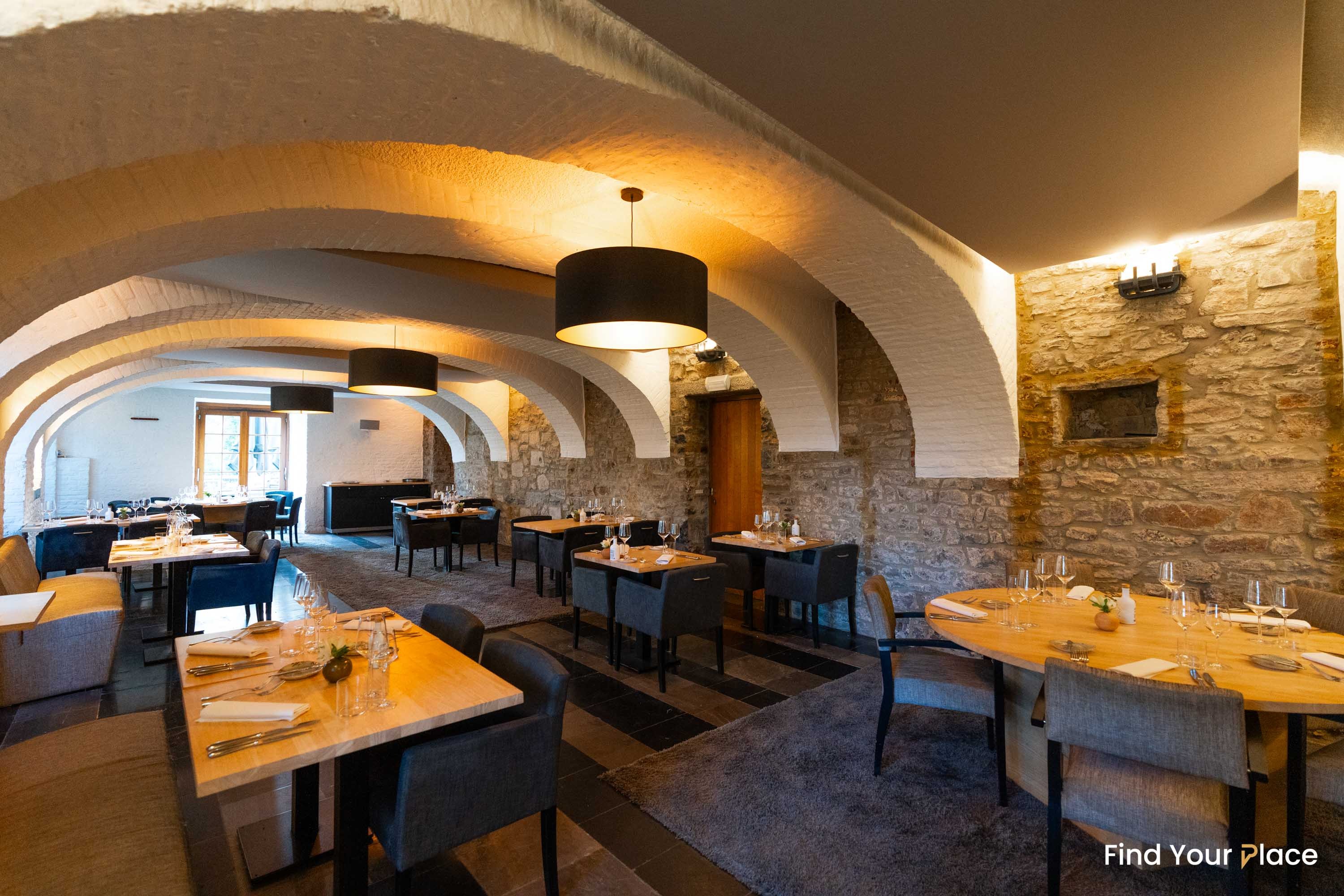 Le Restaurant La Brasserie de l’Héliport fait partie des 8 restaurants étoilés de la Province de Liège. Situé au rez-de-chaussée, le restaurant, qui faisait anciennement office de crypte du château, offre un espace intimiste et raffiné et vous invite à venir partager un repas d’exception dans une ambiance délicatement feutrée.